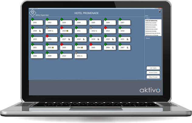 AKTIVO es un sistema de supervisión y control específico para hoteles, moteles y resorts. Es también adaptable a clínicas, hospitales y edificios de oficina con dispositivos elegantes y personalizables. AKTIVO opera con un software de control centralizado.